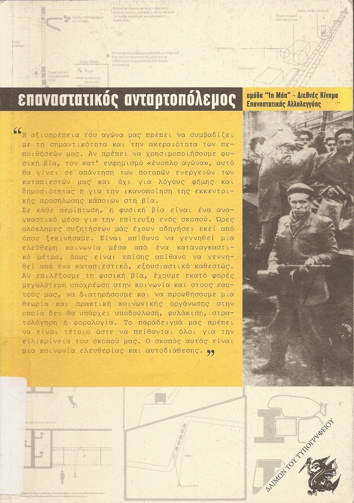 Αυτό το κείμενο γράφτηκε σε μια συγκεκριμένη εποχή, από συγκεκριμένους ανθρώπους. Σε μια εποχή μεγάλων μαχών και μεγάλων ελπίδων. Από ανθρώπους που πίστεψαν πως η επανάσταση δεν είναι κάτι μακρινό και άπιαστο, αλλά κάτι που συνέβαινε δίπλα τους: από κάθε γωνιά του κόσμου όπου γιγαντώνονταν αντι-ιμπεριαλιστικά επαναστατικά αντάρτικα, μέχρι το κέντρο των καπιταλιστικών μητροπόλεων όπου οι δρόμοι τους φλέγονταν και κάποιοι έκαναν την επιλογή των όπλων.