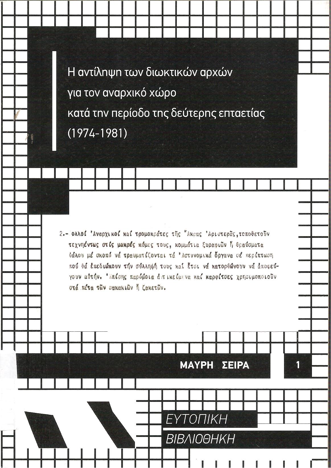 Η παρούσα είναι, μεταξύ αρκετών άλλων, μια προσπάθεια που πιθανότατα να συμβάλει στη δυνατότητα αντίληψης του ιστορικού πλαισίου της εποχής που αναδύθηκε ο "χώρος" μας. Μιας εποχής που τόσο οι εγχώριες εξελίξεις όσο και οι διεθνείς έπαιξαν σημαντικό ρόλο στην ποιότητα και στην έκφραση των ανησυχιών του. Η "πρώιμη" αντιπολίτευση δηλαδή η καραμανλική περίοδος, μεταξύ '74-'81, είναι εποχή όπου ξεκινούν να εκφράζονται ανοιχτά οι αναρχικές ιδέες. Το μικρό και αποσπασματικό αρχείο των διωκτικών αρχών που έπεσε στα χέρια μας, αποτυπώνει όχι μόνο την αντίληψη που έχουν αυτές για τον αναρχικό "χώρο" αλλά και τις σκοπιμότητες που εξυπηρετεί η ενασχόληση τους με αυτόν οι οποίες συνήθως είναι πέρα από ό, τι εκφράζει αυτός. Αποτυπώνει τη σύγχυσή τους για το τι ιδέες πρεσβεύει αφού οφείλουν να αναμετρηθούν με τη διαχρονική χρήση της λέξης "αναρχικοί" ως τον εκπρόσωπο του κακού και να εντάξουν το νέο αυτό "φρούτο" στο ανανεωμένο πλαίσιο διώξεων κάθε ανατρεπτικής δράσης -κάθε δράσης που ξέφευγε από το κοινοβουλευτικό πλαίσιο. [...]